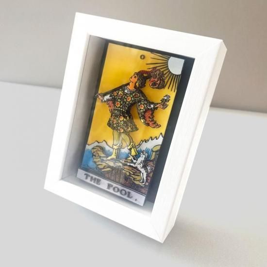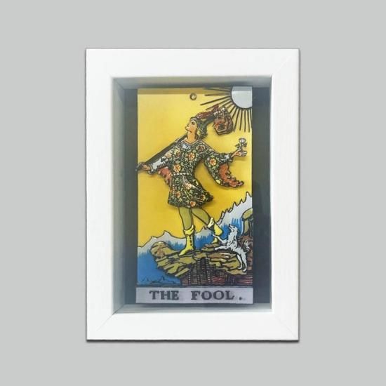 タロットカード「愚者」を立体的に表現した、写真立て風のシャドーボックス。