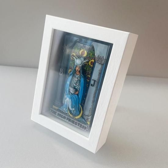 タロットカード大アルカナ「女教皇」を立体的に再現した、写真立て風のシャドーボックス。
