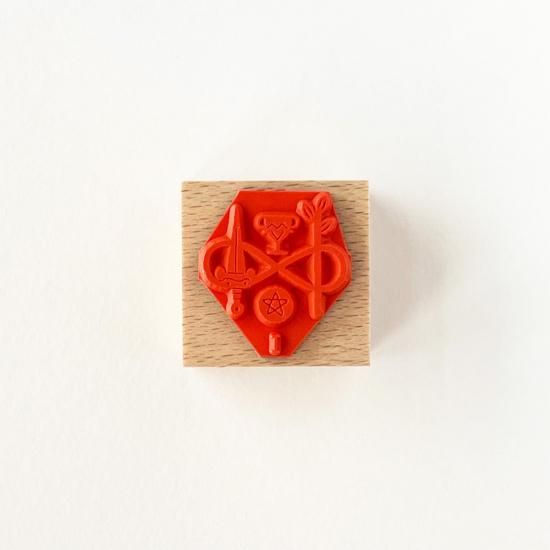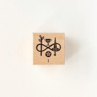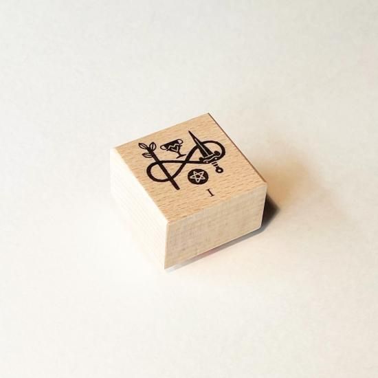 マルセイユ版タロットの大アルカナ「魔術師」の絵柄をモチーフにした、木製のスタンプです。