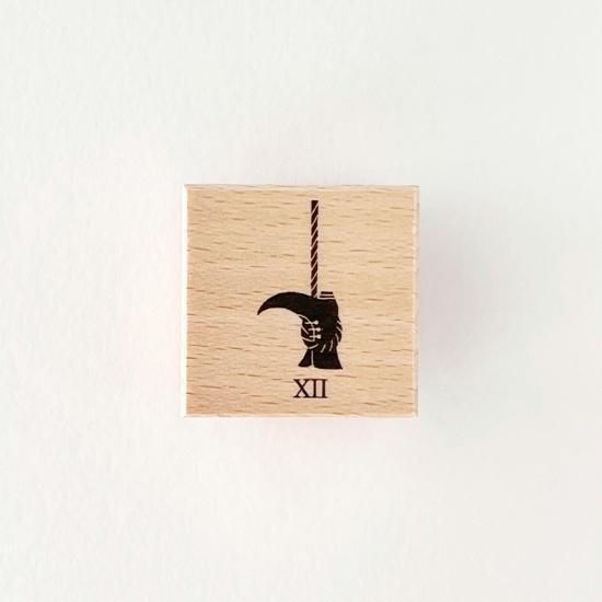 マルセイユ版タロットの大アルカナ「吊るされた男」の絵柄をモチーフにした、木製のスタンプです。