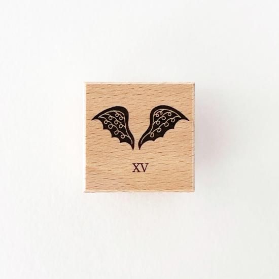 マルセイユ版タロットの大アルカナ「悪魔」の絵柄をモチーフにした、木製のスタンプです。